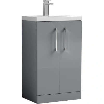 Floor Standing 2 Door Vanity Unit with Polymarble Basin, Satin Grey, 500mm