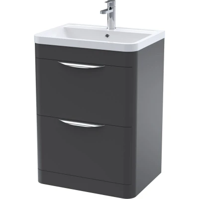 Satin Finish: This bathroom sink cabinet features a smooth satin finish that offers a soft, modern look without high shine. It gently reflects light for a clean appearance and is easy to keep clean with regular wiping. Rectangular Soft-Edge Sink: The vanity unit integrated ceramic basin features a rectangular shape with softened edges and a gently curved bowl. It includes 1 tap hole and offers modern style with practical depth for comfortable daily bathroom use. 2 Drawer Soft Close: The 2 drawer bathroom unit is equipped with a soft-close mechanism that prevents slamming, making it ideal for shared bathrooms where reduced noise and gentle handling are appreciated daily. Floor Standing Stability: Designed to rest securely on the floor, this freestanding bathroom vanity unit adds both style and dependable support, making it a practical addition to high-traffic or family bathrooms. No Assembly Needed: This cloakroom vanity unit with basin comes fully pre-assembled with the basin and handles already attached. Just unpack, position it in your space, and connect the plumbing without dealing with complicated instructions. Complete Set Included: The set includes a high-quality cabinet, a fitted rectangular sink, and cup handles. This all-in-one vanity storage helps you save time and effort when setting up a new bathroom area (Tap and waste are not included). Dimensions: Measuring W: 600 mm D: 450 mm H: 840 mm, this bathroom sink unit is designed to fit seamlessly into narrow bathrooms or cloakrooms while still offering full functionality and storage. Warranty: 5 Years manufacturer's guarantee. The 5-year manufacturer warranty reflects our commitment to quality and customer satisfaction, providing peace of mind with your investment.
