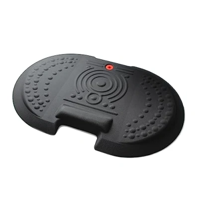 Ergonomically designed anti-fatigue standing surface for use with standing desks. The contoured, non-linear surface between 0.8" and 2" encourages regular movement and the changes in standing positions which significantly reduces fatigue. Raised ergonomic surround feature allows further rocking or stretching of feet and ankles to stimulate the lower body while standing. Embossed foot massage features. Ergo bar and rear recess enable ankle flex exercise for added stimulation. The facility also enables easy mat positioning. Fine polyester cover for added tactile comfort and durability.