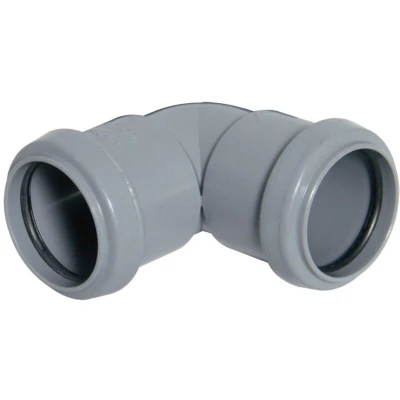 The Floplast 90 bends are a reliable and efficient push-fit waste piping system. They are easy to install due to their polypropylene plastic construction. The built-in rubber seals provide a secure connection without the need for solvent welding. These bends are available in a range of common metric diameters. The durable polypropylene ensures longevity and reliability. It is easy to install with no tools required. The rubber seals enhance the security between pipe and fitting, preventing leaks. The bends come in a range of common sizes, fitting most standard piping systems.. FloPlast Grey Pushfit 90 Degree Waste Knuckle - 32mm Polypropylene
