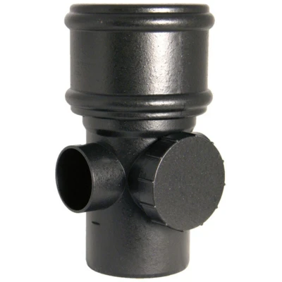Main Product Description: FloPlast Cast Iron Effect Soil Access Pipe - Single Socket. Features: - Suitable for use with 110mm diameter pipes. - Ring seal push fit socket on the top end and a plain spigot end at the bottom. - Spigot end is the same size as 1110mm pipe, allowing connection to other fittings or pipes. - Available in black color. - Covered by a manufacturer's 20-year 'cast iron' guarantee. Benefits: - Authentic cast iron appearance with the advantages of a PVC system. - Durable and long-lasting due to the 20-year guarantee. - Meets various British Standards for plumbing and fire safety.