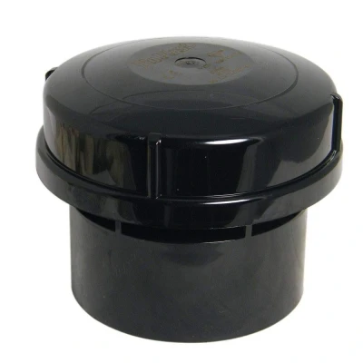 This FloPlast air admittance valve allows air into your sanitary pipework while stopping foul gasses from escaping. It features a non-return pressurised valve that prevents foul gas re-entry into the system. The valve can be fitted to a soil stack and is black in colour. It functions with solvent and ensures no foul gasses enter your building. FloPlast Air Admittance Valves are kitemark licensed in accordance with BS EN 12380:2002 licence number KM 512474. With a diameter of 110mm and it is 118mm in height.. Floplast Black Air Admittance Valve Solvent Internal PVC