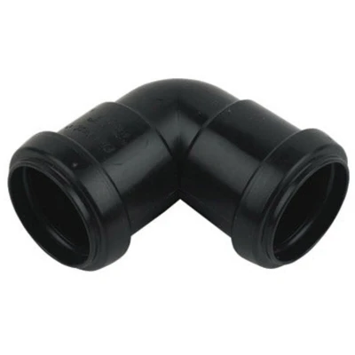 Main Product Description: The FloPlast Push Fit Waste 90 Degree Knuckle is a black plastic connector designed for use in waste pipe systems. It is made from acrylonitrile butadiene styrene (ABS) and is available in various sizes, including 32mm and 40mm. This knuckle bend provides a quick and easy solution for creating tight, neat 90-degree bends in waste pipes, with a secure push-fit ring seal system that does not require solvent welding. The FloPlast Push Fit Waste system is known for its ease of installation and durability, making it a popular choice for plumbing professionals and DIY enthusiasts alike. Features: - Made from ABS material - Secure push-fit ring seal system - Available in 32mm and 40mm sizes - No solvent welding required - Easy to install Benefits: - Quick and easy installation - Secure seal system for leak-free connections - No need for solvent welding, reducing installation time and mess - Available in various sizes to accommodate different pipe diameters - Durable