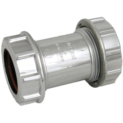 Main Product Description: FloPlast's Compression Waste Coupling provides a stylish and durable solution for connecting waste pipes. With a chrome finish, it adds an elegant touch to your plumbing while ensuring a secure and watertight connection. Suitable for various pipe materials like ABS, PVC, and polypropylene, this coupling offers versatility in installation scenarios. Additional Features and Benefits: - Chrome effect enhances the overall aesthetic appeal of plumbing systems. - Designed to fit seamlessly with different pipe types and brands. - Manufactured in the UK according to British Standards. - Easy to install using a screw-down compression ring seal. - Can be disassembled for maintenance purposes.