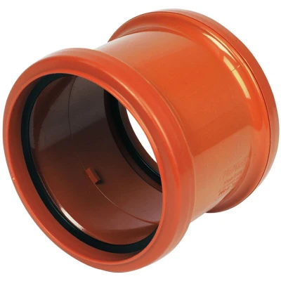 The FloPlast Underground 110mm Double Socket Pipe Coupling is crafted from durable PVC-U, offering enhanced strength and longevity. This lightweight component is part of the 110mm Underground Drainage system, designed for efficient wastewater and foul discharge from above-ground drainage systems. Its double socket design simplifies pipe connections, ensuring ease of use and high performance. The coupling is suitable for high-temperature waste discharge. The system includes assorted gullies and traps compatible with most installations, making it ideal for both above and below-ground drainage applications. Durable, strong and long-lasting, this pipe coupling is easy to work with and install.. FloPlast Underground 110mm Double Socket Pipe Coupling Terracotta PVCU