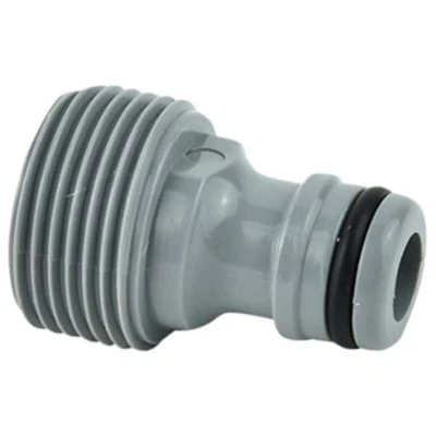 General description This Flopro Accessory Adapter converts your watering products from female to male connections. It allows a secure snap-fit connection to watering accessories such as sprinklers and can connect to water sources with female threads. Made from high-quality, UV-resistant plastic, it is compatible with all major watering brands, enabling you to use your existing equipment efficiently. Technical specifications Threaded diameter: 3/4 inch BSP Installation Simply screw the adapter onto the water source or accessory with compatible threads Ensure a tight fit to prevent leaks Usage Use the adapter to connect watering accessories with male fittings to water sources with female threads Allows for quick and secure connections in your irrigation system Other information