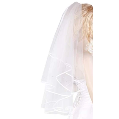 Flora® 2 Tier Satin Edged Bridal Veil with Austrian Crystal Rhinestones,32" L Waist Length (White)