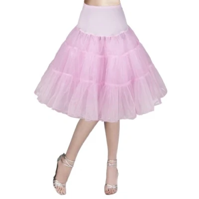 Flora® 50s VINTAGE ROCKABILLY Retro Tutu PETTICOAT SKIRT,25" Length (XSmall Medium, PINK)