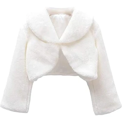 Flora Faux Fur Flower Girl's Long Sleeve Ivory Shrug/Bolero/Jacket (XLarge)