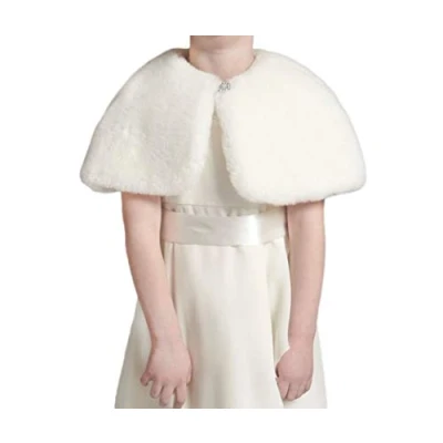 Flora Faux Fur Flower Girl Shrug/Child Bridesmaid Cover up with Diamante Brooch (Medium, Ivory)