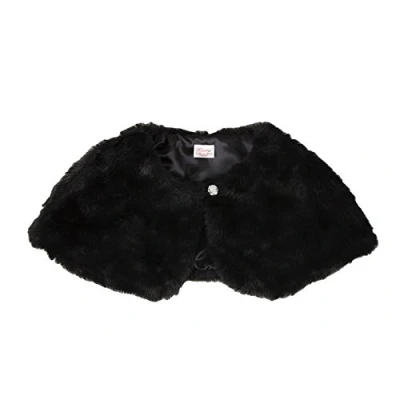 Flora Faux Fur Flower Girl Shrug/Child Bridesmaid Cover up with Diamante details (Large, BLACK)