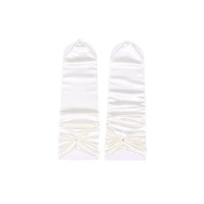 Flora Satin Bridal Prom Fingerless Gloves,ruffle & diamantes (IVORY)