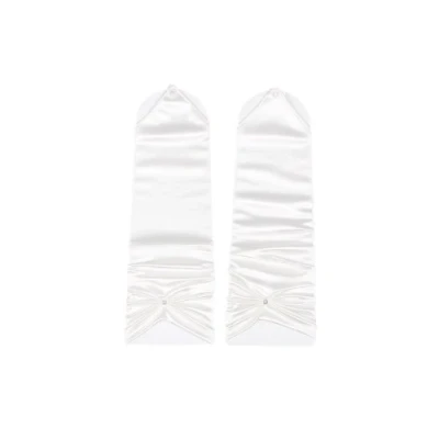 Flora Satin Bridal Prom Fingerless Gloves,ruffle & diamantes (WHITE)