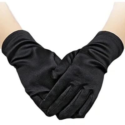 L(8-12 Yrs) Length: approx. 19cm/7.5" measured from tip of middle finger M(4-7 Yrs)Length: approx. 16.5cm/6.5" measured from tip of middle finger S(0-3Yrs)Length: approx. 14.5cm/5.7" measured from tip of middle finger Made of Premium Soft Stretchy Satin Simple Wrist style
