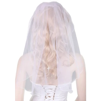 Overall Length: 58cm/23" Made of 100% QUALITY Guaranteed light-weight tulle with sparkling Diamante/Rhinestone Cross in size approx.1"x1.4" Lettuce curly edge finish gives the veil lots of body with a gentle curve Trailing centre gathered veil & Clear Comb is hand-made securely fastened on(Not just glued on)