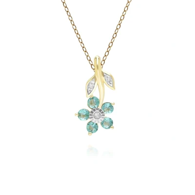 Floral Emerald & Diamond Pendant Necklace in 9ct Yellow Gold