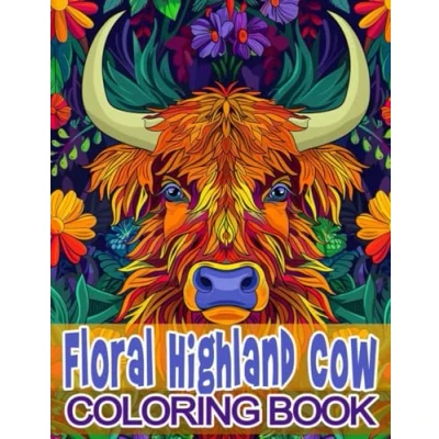 Floral Highland Cow Coloring Book: 48 Among Flowers Illustrations For Stress Relief