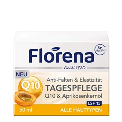 Florena Anti Wrinkle Day Cream Q10 & Apricot Kernel Oil, Vegan, 1er Pack (1 x 50 ml