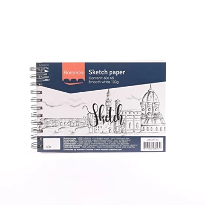 SKETCH BOOK — This Florence drawing pad is ideal for fine line drawings, sketches, doodles, and drawings with pencil and graphite. It is a must-have for artists and hobbyists alike VERSATILE DRAWING PAD — Start with fine line drawings and continue with a dark HB pencil, black fineliner, marker or ink. Create shadows for a realistic effect and complete your artwork with crayons EASY REMOVAL — Once your drawing is finished, you can easily tear the sheet out of the sketchbook thanks to the pre-punched tear-off line, ensuring a clean edge without any damage to your art STURDY AND DURABLE DRAWING PAPER — The sturdy and durable paper is acid- and lignin-free. It offers an ideal combination of quality, versatility and practical design CONTENTS — The Florence A5 sketchbook contains 60 sheets of drawing paper with a smooth surface. The sheets have a thickness of 130 gsm and are acid- and lignin-free