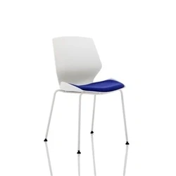 Stylish white shell general purpose chair. Stevia Blue fabric upholstery. Floor protection feet. Shaped backrest for lumbar support. Stacks up to 4 high.