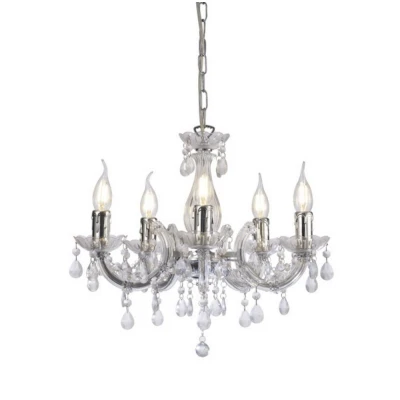 Floria Chandelier with Acrylic Sconce & Droplets 5 Light E14 Polished Chrome