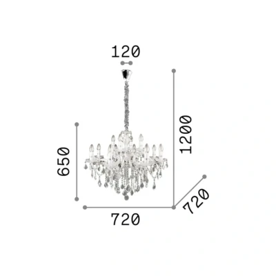 The Florian chandelier is an exquisite lighting fixture that embodies both elegance and opulence, making it a stunning addition to any room. With its striking chrome finish and twelve beautifully designed candle holders, this chandelier creates a magnificent spectacle of light, perfect for enhancing the atmosphere in living rooms, dining areas, or grand entryways.