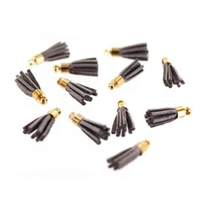 Set of 12 mini pompoms in suede and gold metal. Length: approximately 1.9 cm.