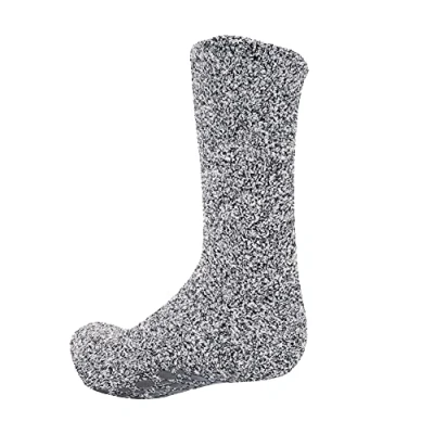 FLOSO® Mens Warm Slipper Socks With Rubber Non Slip Grip (UK 6 12 (EURO 39.5 47)) (Grey)