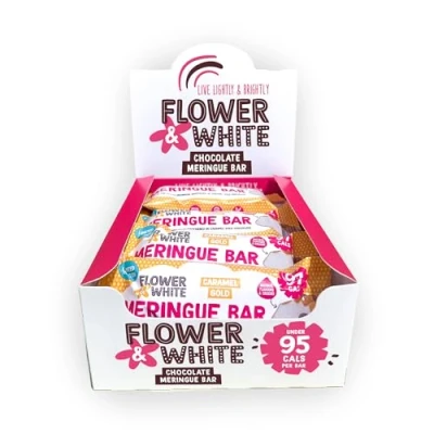 🍫 DELIGHTFUL CARAMEL INDULGENCE: Our Flower & White meringue bar is a delightful blend coated in rich caramel gold chocolate. With only 97 calories per bar, these protein bars are a guilt-free snack that will satisfy your sweet cravings without adding extra calories to your diet. 🏆 AWARD-WINNING MERINGUES: From the garden shed to producing over 1 million meringues a day, Flower & White’s Great Taste award-winning range is delightfully light yet indulgent! These bars offer exceptional flavour and quality. 🌱 VEGETARIAN INGREDIENTS: Made with natural colours and flavours, these low-calorie protein bars are gluten-free and suitable for vegetarians. Crafted with high-quality ingredients like free-range egg whites and caramelised sugar, they offer a wholesome and delicious snack. ✔️ ECO-FRIENDLY PACKAGING: Enjoy these natural protein bars knowing that the packaging is fully recyclable. We ensure that our paper packaging is environmentally sustainable, aligning with your commitment to sustainability and care for the environment. ❤️ GUILT-FREE & NUTRITIOUS: With only 97 calories per bar, this caramel chocolate treat is an excellent choice for a lighter snack. Packed with 3.7g of fat and 14.6g of carbohydrates per serving, it’s a great option for a quick energy boost without excess calories.