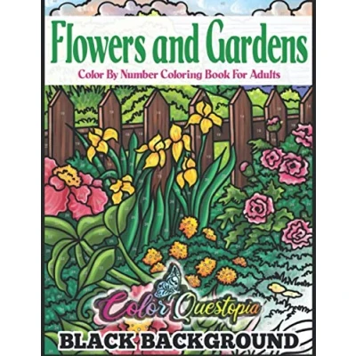 Flowers and Gardens Color By Number Coloring Book for Adults BLACK BACKGROUND: Large Print Beautiful Countryside Blooms Relaxation (Large Numbers)