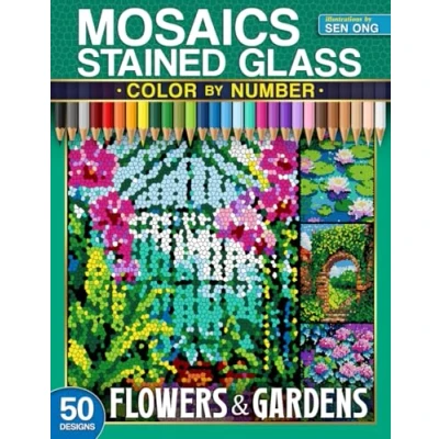 Flowers and Gardens Stained Glass Mosaics Color by Number: 50 Captivating Floral Garden Scenes