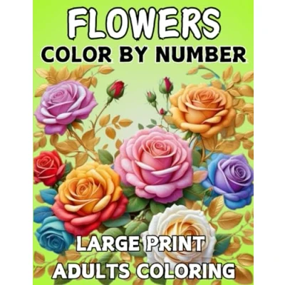Flowers Color By Number Large Print Coloring Book For Adults: New Adults (Easy 35 Beautiful Desaing)