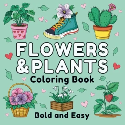 Flowers & Plants Bold and Easy Coloring Book: 50 Simple, Big Nature Themed Illustrations, Relaxation Stress Relief Designs for Adults, Teens Kids