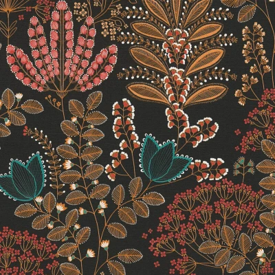 Flowers wallcovering wall Profhome 393495 hot embossed non woven wallpaper slightly textured with floral ornaments matt black orange red blue white
