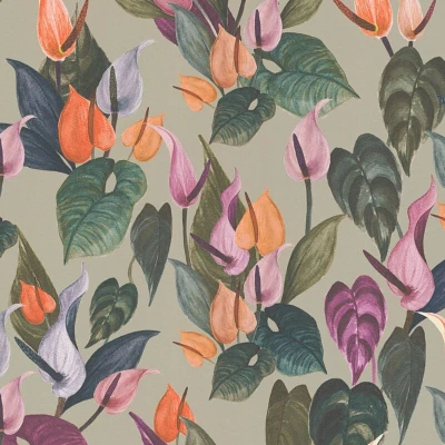 Flowers wallcovering wall Profhome 782102 hot embossed non woven wallpaper smooth with floral ornaments matt grey green brown purple orange red 5,33