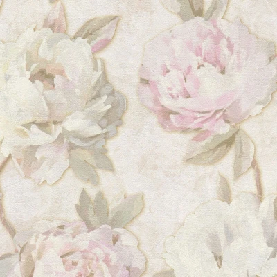 Flowers wallcovering wall Profhome 791671 hot embossed non woven wallpaper slightly textured with floral ornaments matt cream pink pale green beige