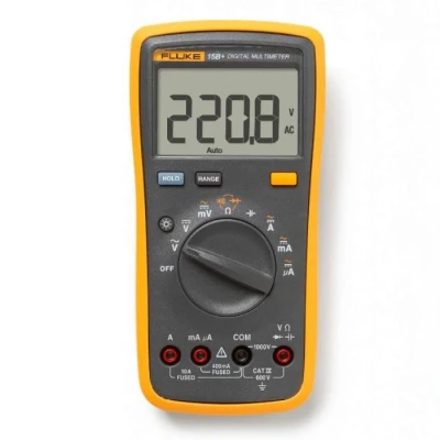 #html-body [data-pb-style=MARMFV6],#html-body [data-pb-style=RRAWGRD],#html-body [data-pb-style=UUM9FTC]{justify-content:flex-start;display:flex;flex-direction:column;background-position:left top;background-size:cover;background-repeat:no-repeat;background-attachment:scroll}Fluke 15B+ Digital Multimeter The Fluke 15B+ Digital Multimeter is an entry-level, easy-to-use tool for everyday electricians and DIY enthusiasts who value quality, accuracy and safety in testing and troubleshooting. It measures AC/DC voltage up to 1000 V and AC/DC current up to 10 A, which covers a wide range of electrical applications. It also supports resistance measurements up to 40 MΩ and capacitance up to 1000 μF and includes continuity and diode testing, allowing for efficient fault detection and component verification. Built with the durability professionals have come to expect from Fluke, the Fluke 15+ features a CAT III 600 V safety rating, allowing it to withstand daily use in demanding environments and be dependable when working on electrical systems. It has a large white backlit LCD display with a data hold functionality that allows users to capture and record measurements to boost productivity and accuracy during troubleshooting. The Fluke 15+ operates in temperatures that range between 0°C and 40°C, withstanding up to 90% relative humidity. It offers fuse protection for current inputs, a durable IP40-rated casing, and complies with IEC 61010-1 and IEC 61010-2-030 safety standards. With a battery life of up to 500 hours, the Fluke 15B+ ensures long-lasting performance in both professional and home environments. Comparing Fluke 15B+, 17B+ and 107 Digital Multimeters Feature Fluke 15B+ Fluke 17B+ Fluke 107 True RMS - - - Voltage AC/DC 1000 V 1000 V 600 V Basic DC Accuracy 0.5% + 3 0.5% + 3 0.5% + 3 Current AC/DC 10 A 10 A 10 A Resistance 40 MΩ 40 MΩ 40 MΩ Continuity ✔ ✔ ✔ Capacitance 1000 μF 1000 μF 1000 μF Frequency - 100 kHz 100 kHz Diode Test ✔ ✔ ✔ Relative Measurements - ✔ - Temperature - ✔ - Backlit Display ✔ ✔ ✔ Safety Rating CAT III 600V CAT III 600V CAT III 600V Warranty 2 years 2 years 2 years part number: FLUKE-15B+/EUR Key Features CAT III 600 V safety rating Large, easy-to-read display with bright white backlight Tests voltage, resistance, continuity, capacitance Input terminal for ac and dc current measurements to 10 A current Diode test, data hold