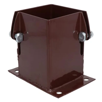 Flush fit bolt down post support No digging or cement required For fence posts 75mm x 75mm or 100mm x 100mm Metal casing protects posts against rot and decay Powder coated for corrosion protection.