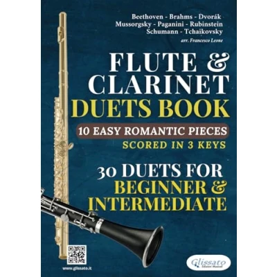 Flute and Clarinet duets book 10 Easy Romantic Pieces scored in 3 keys (30 duets): beginner intermediate