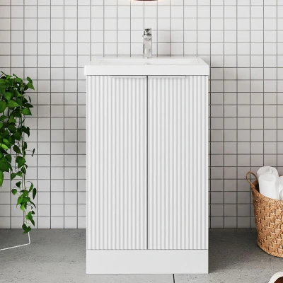 Fluted Floor Standing 2 Door Vanity Unit with Basin 1 500mm Wide Satin White Hudson Reed