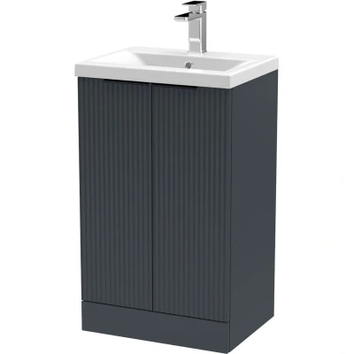 Fluted Front Floor Standing 2 Soft Close Door Bathroom Vanity Unit with 1 Tap Hole Basin, 500mm, Dark Grey, Black Handles