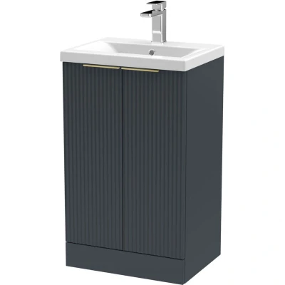 Fluted Front Floor Standing 2 Soft Close Door Bathroom Vanity Unit with 1 Tap Hole Basin, 500mm, Dark Grey, Brushed Brass Handles