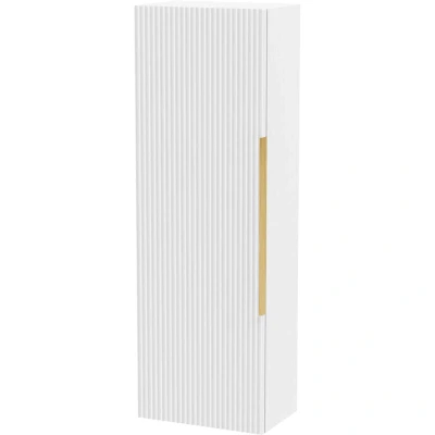 Fluted Front Wall Hung Single Door Tall Bathroom Storage Unit, 400mm, White, Brushed Brass Handle