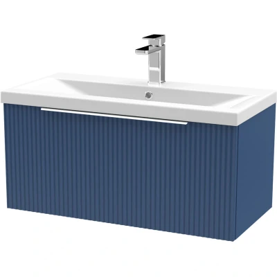 Fluted Front Wall Hung Single Soft Close Drawer Bathroom Vanity Unit with 1 Tap Hole Ceramic Mid Edge Basin 800mm Satin Blue