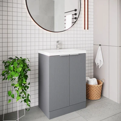 Fluted Satin Grey 600mm 2 Door Vanity Unit and Mid Edge Ceramic Basin DFF225A Hudson Reed