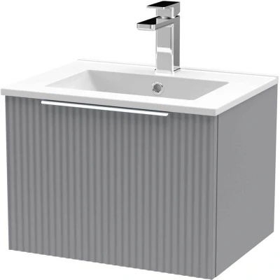 Fluted Wall Hung 1 Drawer Vanity Unit with Basin 2 500mm Wide Satin Grey Hudson Reed