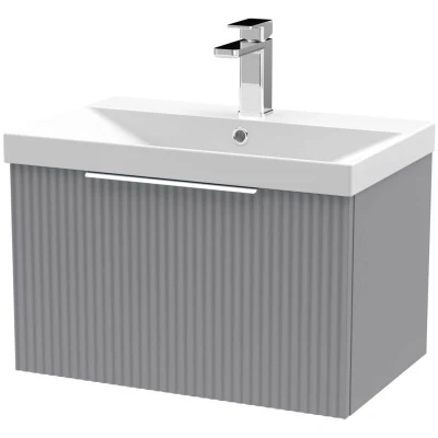 Fluted Wall Hung 1 Drawer Vanity Unit with Basin 3 600mm Wide Satin Grey Hudson Reed