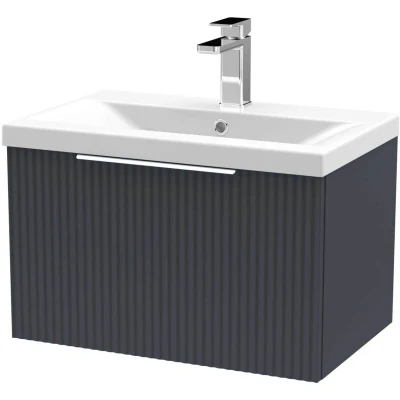 Fluted Wall Hung 1 Drawer Vanity Unit with Basin 600mm Wide Satin Anthracite Hudson Reed