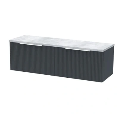 Fluted Wall Hung 2 Drawer Vanity Unit with Bellato Grey Worktop 1200mm Wide Satin Anthracite Hudson Reed