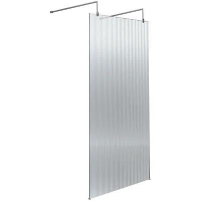 Fluted Wet Room Screen with Support Arm and Feet 900mm Wide 8mm Glass Hudson Reed